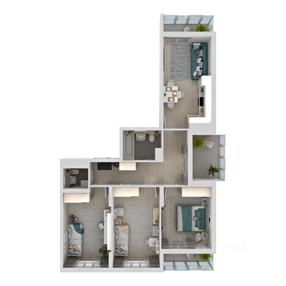 НОВАЯ умная планировка АМГРАД с прекрасным видом на 3 стороны и тремя лоджиями с панорамным или стандартным остеклением в зависимости от этажа. Эта 3-комнатная квартира, благодаря просторной кухне-гостиной имеет функционал 4х-комнатной, ведь здесь можно не только готовить, но и встречать гостей, любоваться закатами с чашкой кофе или чая. В вашем распоряжении остаются 3 изолированные комнаты правильной прямоугольной формы. В квартире просторный холл, где можно разместить систему хранения. Два санузла, обеспечат возможность комфортного пользования даже для большой семьи или гостей. Изюминка квартиры просторная 5-метровая лоджия с распашными балконными дверьми, благодаря чему увеличивается инсоляция квартиры. Кроме того, на всех лоджиях можно организовать дополнительное место для отдыха, работы и хранения. Начиная с 19-го этажа и выше в квартире увеличенная высота потолков - 2,76 м! Окна выходят на 3 стороны: в закрытый благоустроенный двор, на территорию детского сада и зеленую зону.