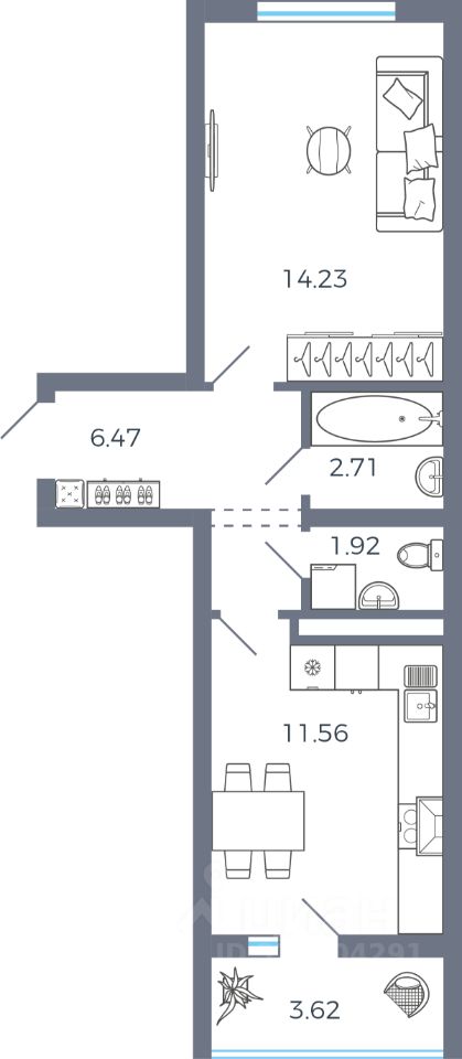 Жилая площадь14,2 м2