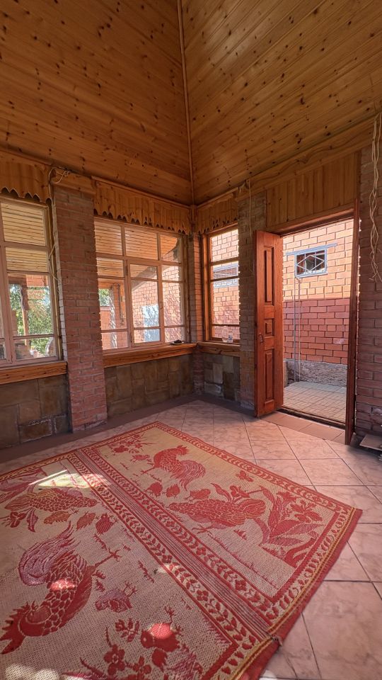 Дом построен из красного кирпича, сделан основательно и из хороших материалов. Полностью обустроенный внутри,отлично подойдет для большой семьи. К дому пристроен гараж под лодку, на территории есть веранда для отдыха, зона барбекю с беседкой, парковочные места и уличный туалет.