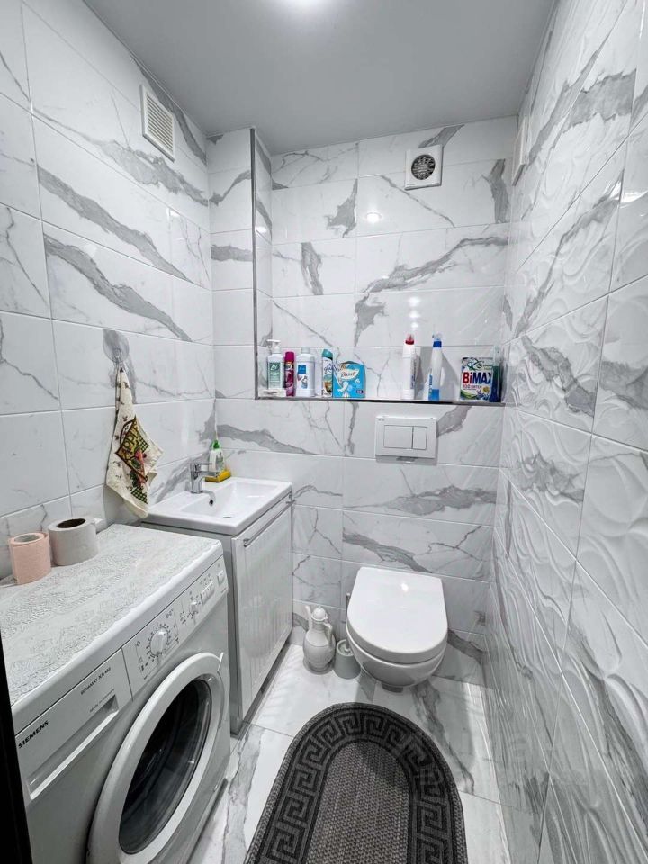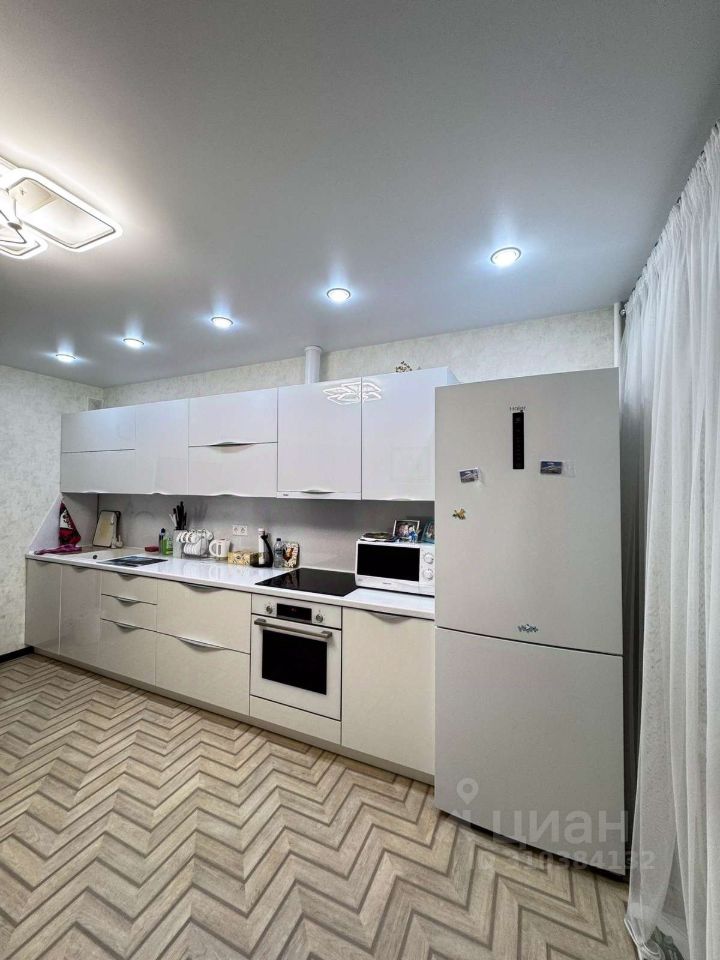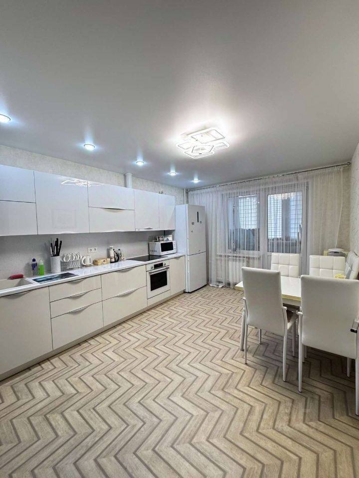 При продаже оставим кухонный гарнитур белого цвета в глянцевой эмали ( прост в использовании и долговечен ), доводчики Blum.