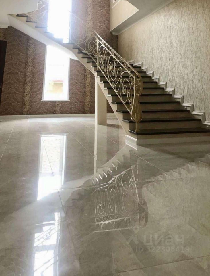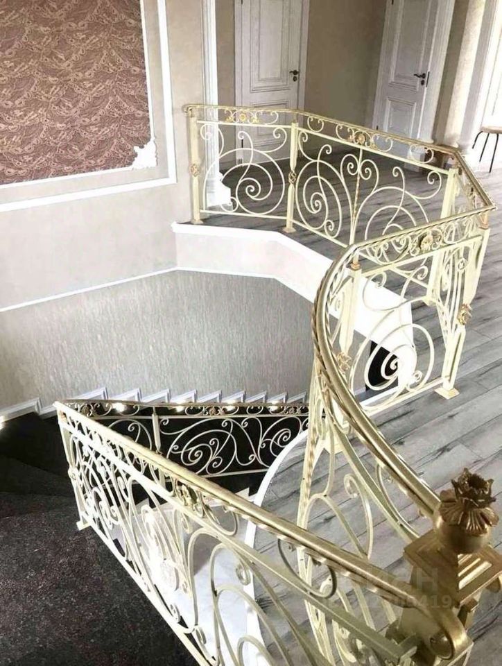 Лестница: Монолитная, отделана гранитом и украшена коваными перилами.