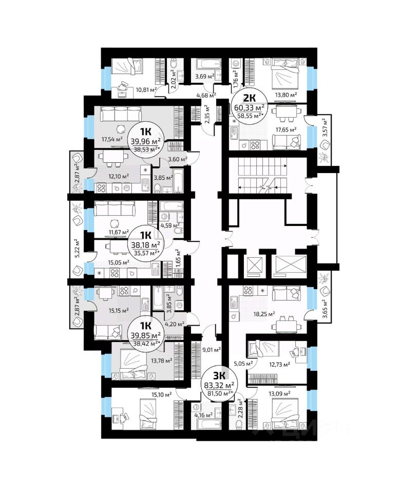 Общая площадь39,96 м2