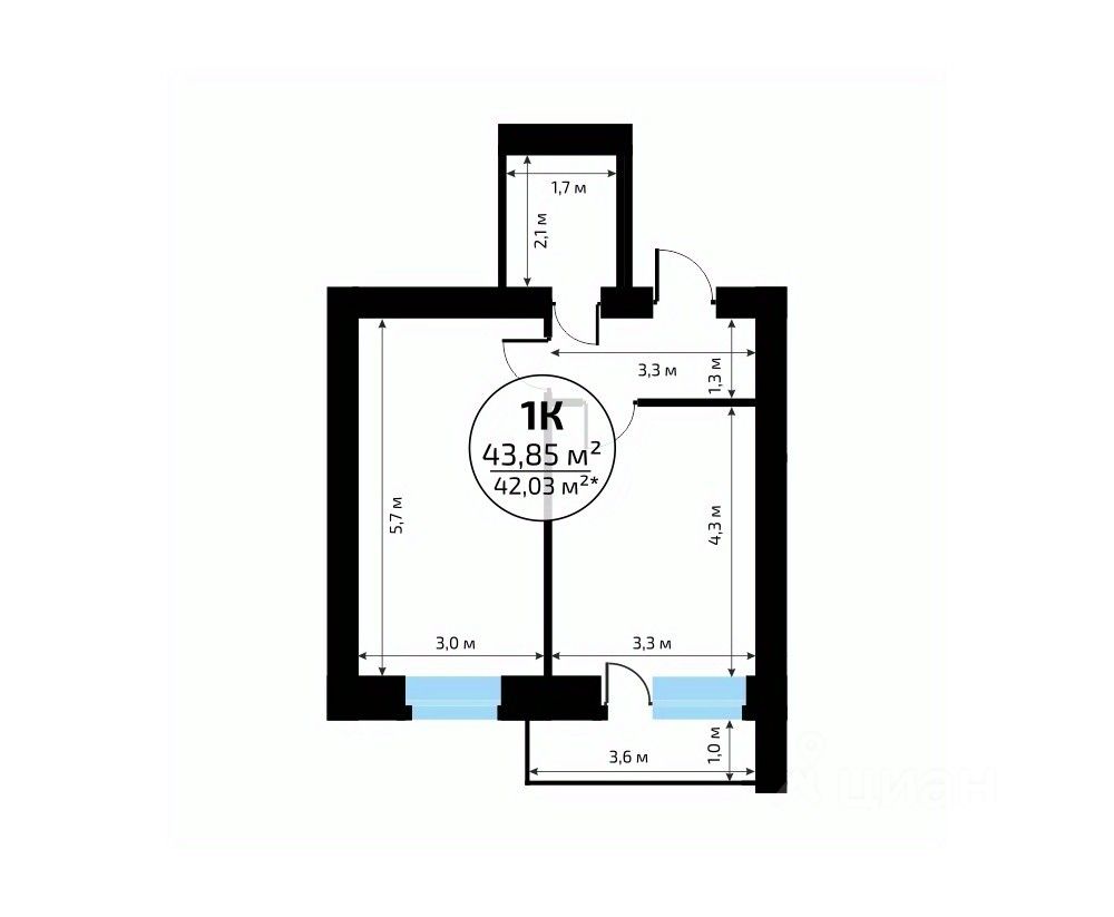 Общая площадь43,85 м2