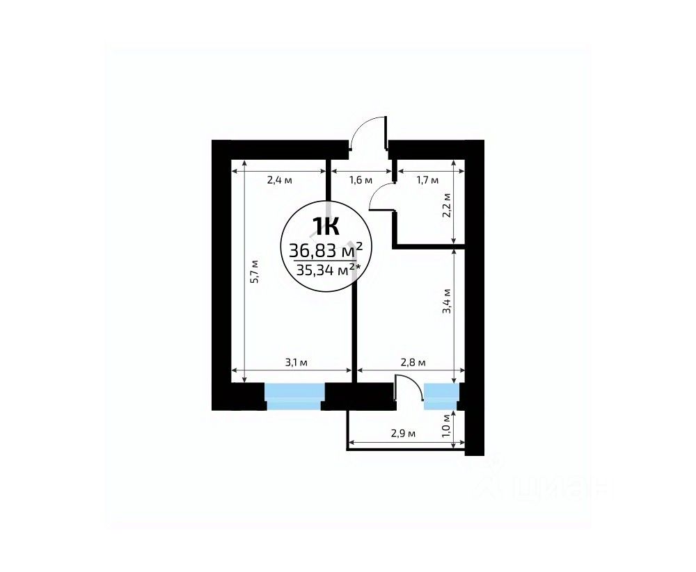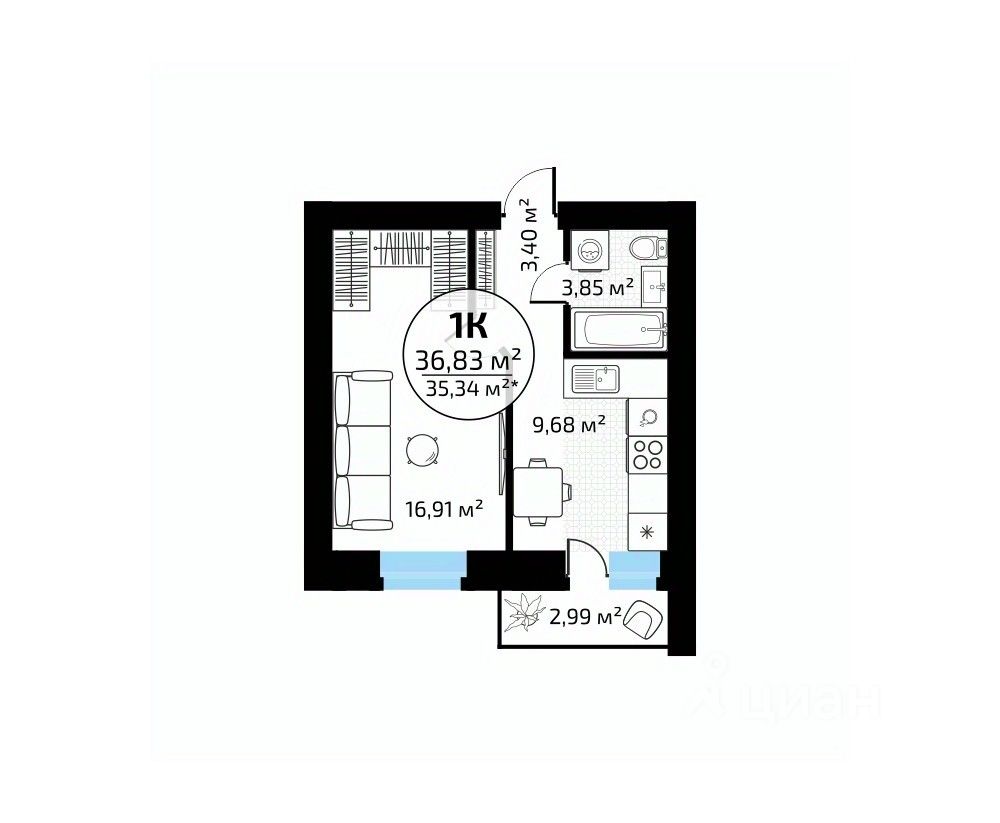 Общая площадь36,83 м2