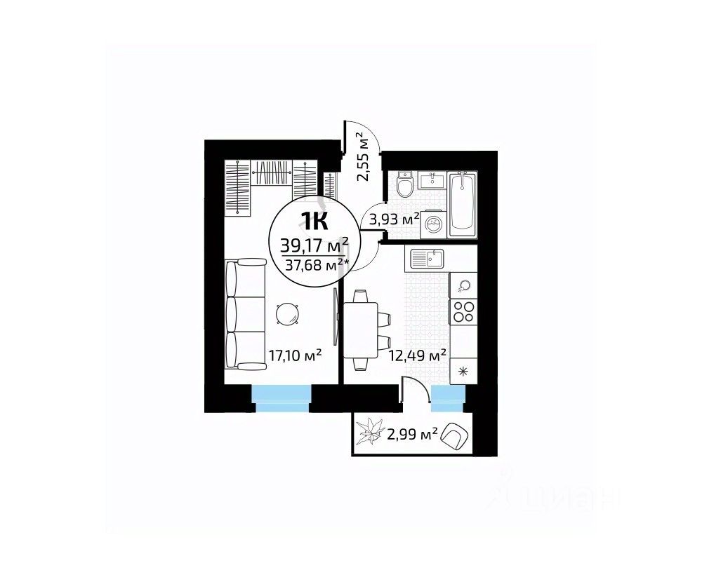 Общая площадь39,17 м2