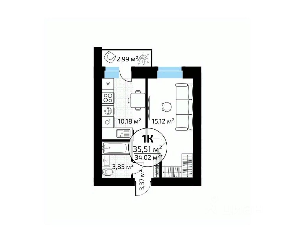 Общая площадь35,51 м2