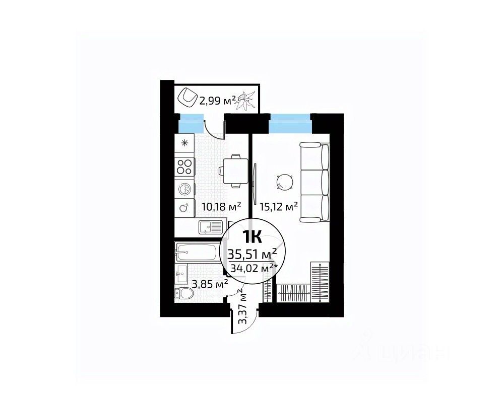 Общая площадь35,51 м2