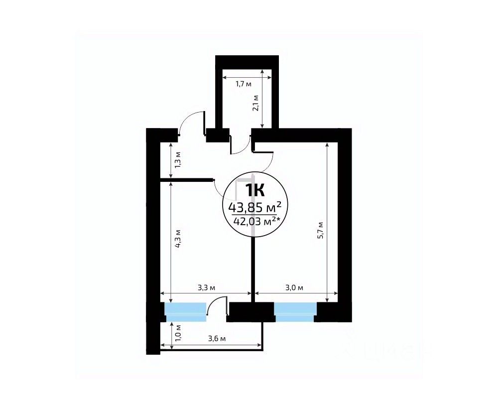 Общая площадь43,85 м2