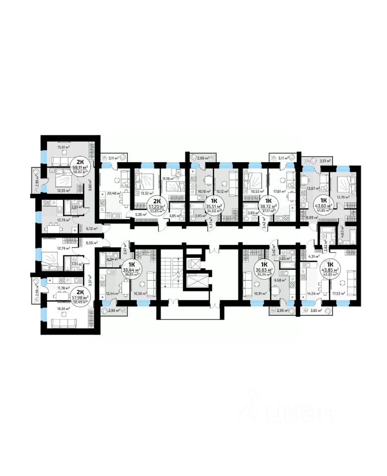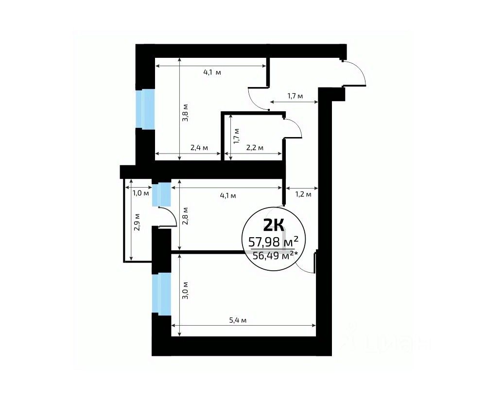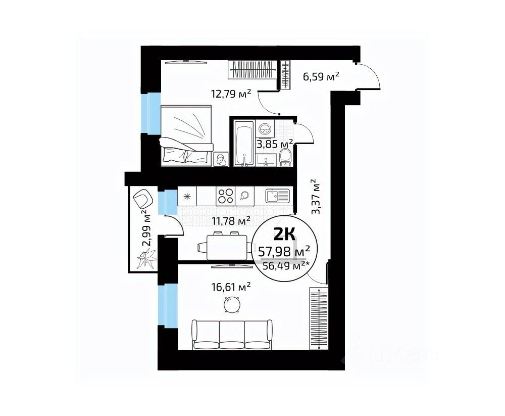 Общая площадь57,98 м2