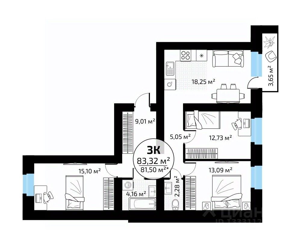 Общая площадь83,32 м2