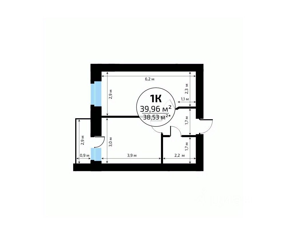 Общая площадь39,96 м2