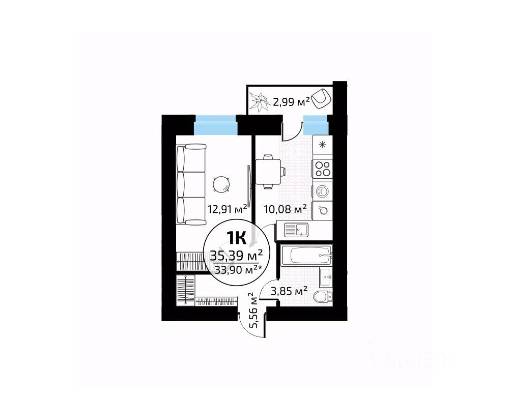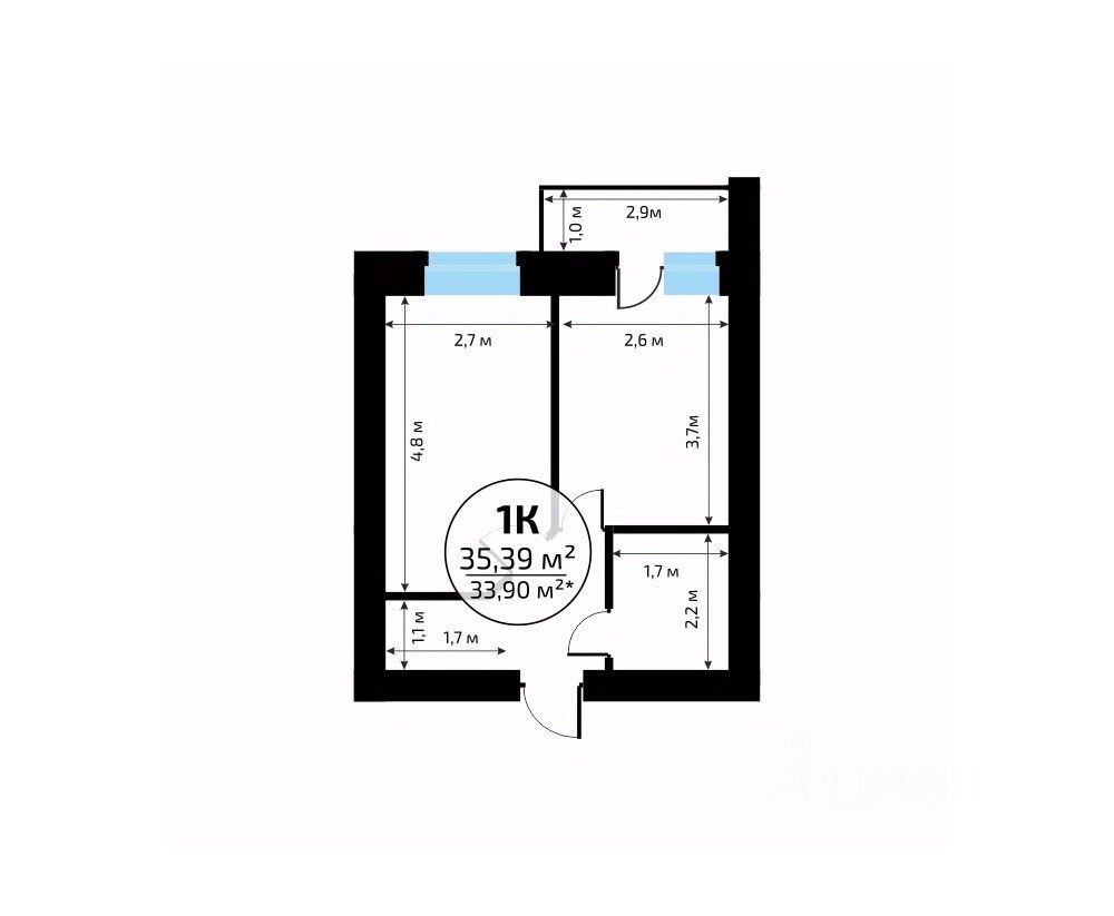Общая площадь35,39 м2