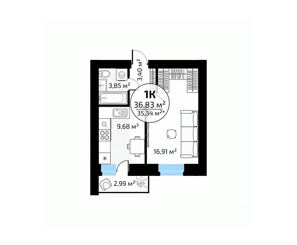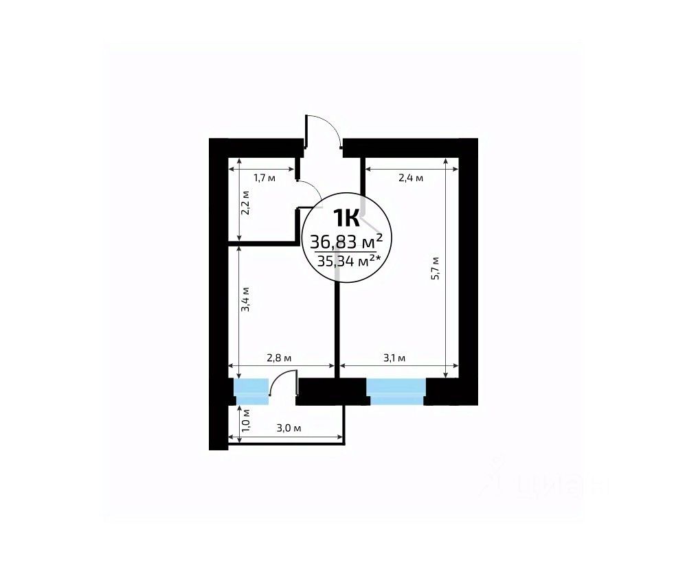 Общая площадь36,83 м2