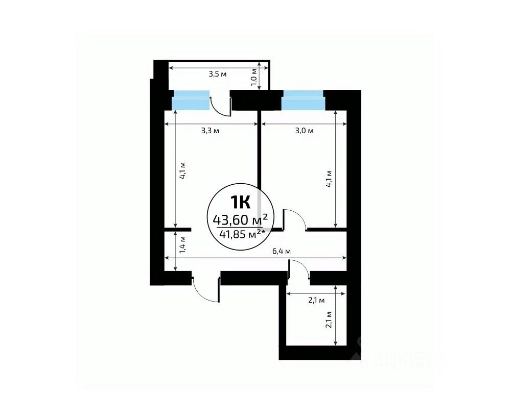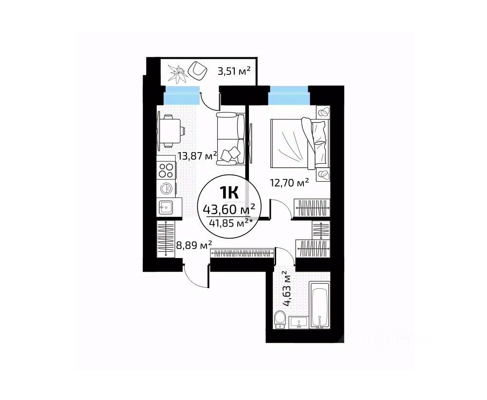 Общая площадь43,6 м2