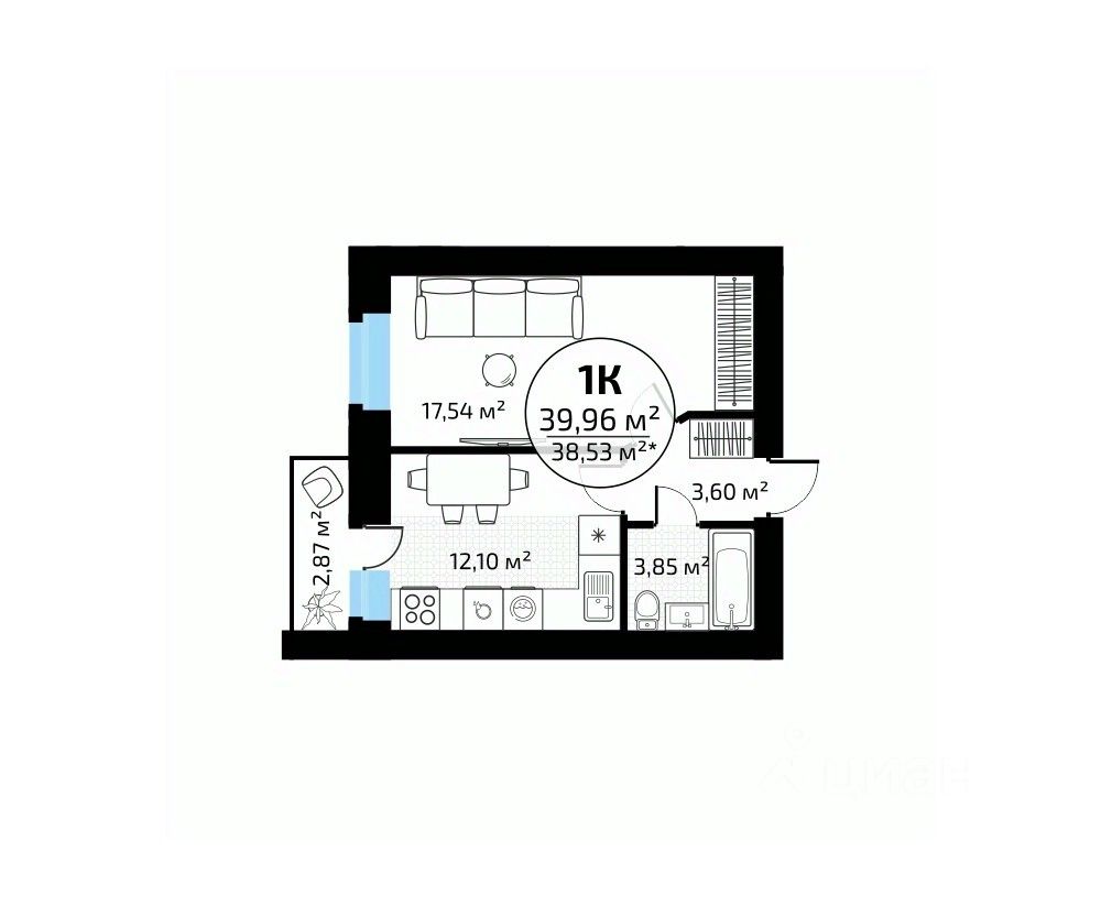 Общая площадь39,96 м2