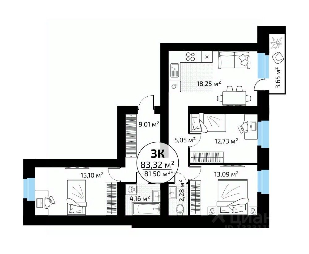 Общая площадь83,32 м2