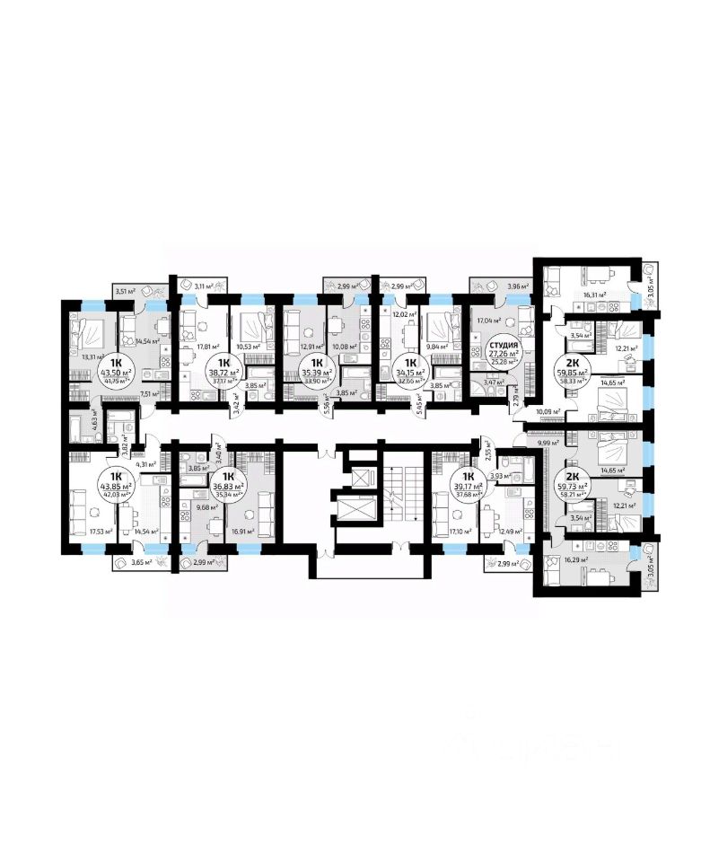 Общая площадь43,5 м2