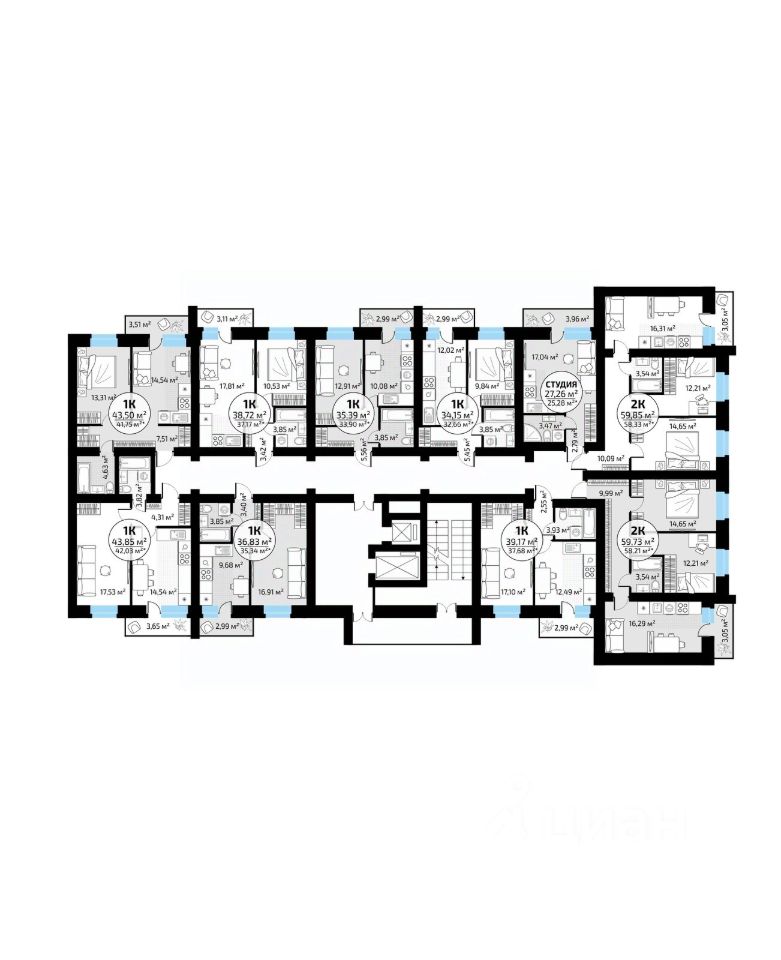 Общая площадь43,5 м2