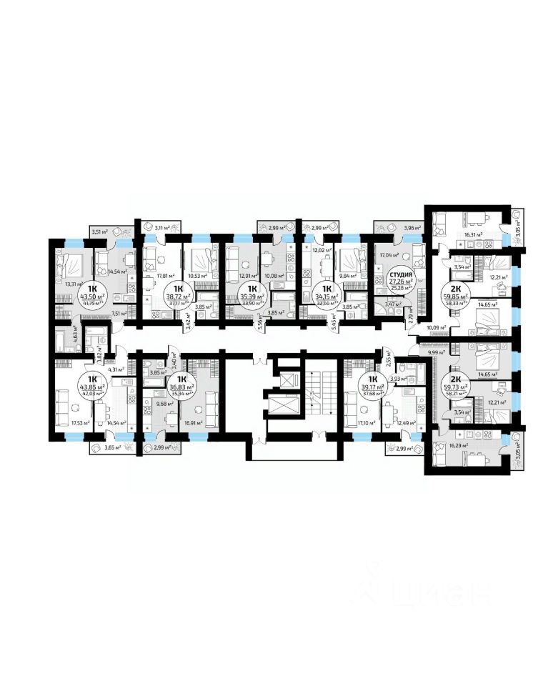 Общая площадь43,85 м2