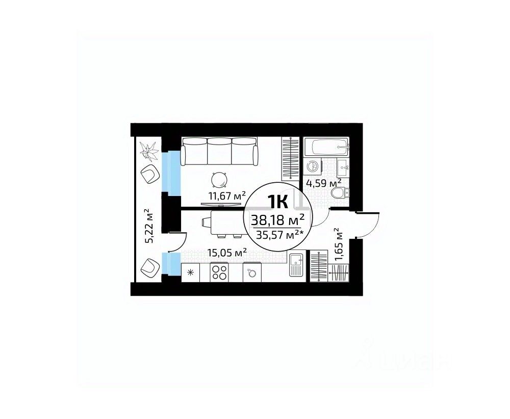 Общая площадь38,18 м2