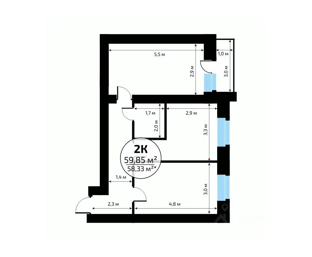 Общая площадь59,85 м2