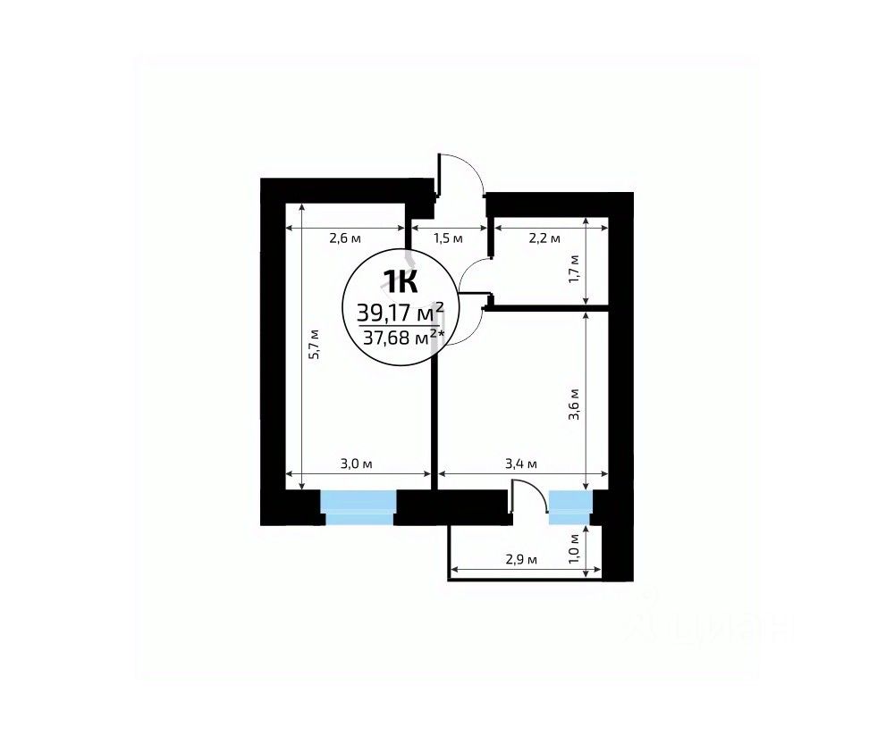Общая площадь39,17 м2