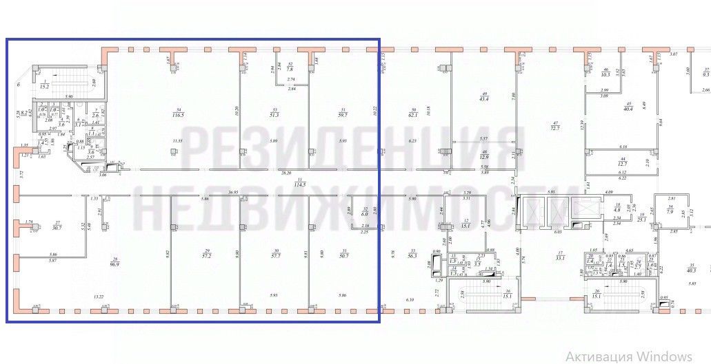 Помещение занимает отдельную часть этажа. Площадь 634 кв.м. Выполнен свежий офисный ремонт. Покрытие полов - линолеум и плитка. Покрытие потолков - армстронг. Здание обслуживают два лифта для арендаторов.