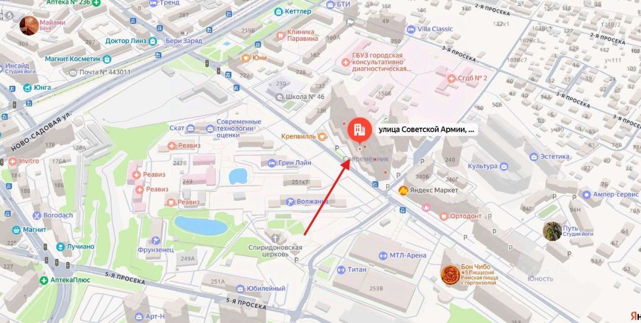 Аренда офисного помещения в новом, современном жилом доме. Объект расположен по адресу ул. Советской Армии, 238 А (рядом с пересечением с улицей Ново-Садовая) на втором этаже.