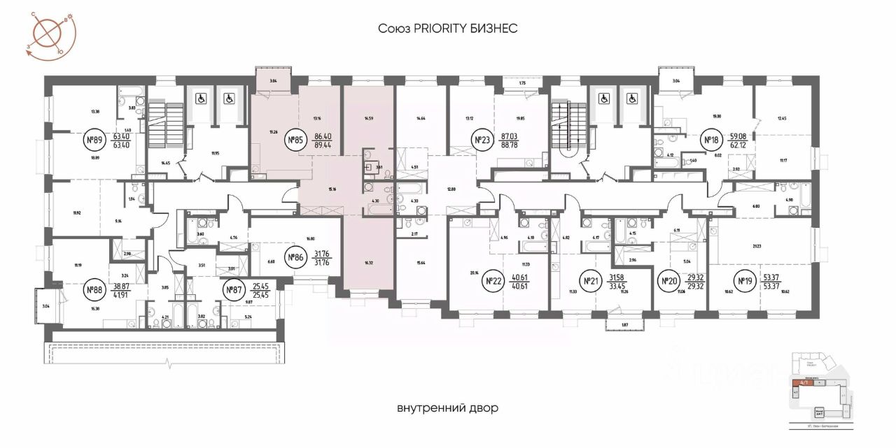 Продаётся 3-комнатная квартира в строящемся доме (Дом 4), срок сдачи: III-кв. 2029, общей площадью 89.44 кв.м., на 5 этаже. Мы начали с эталона - жилого комплекса Союз Priority, лучшего в России. А теперь представляем его логичное и яркое продолжение Союз Priority MAX.