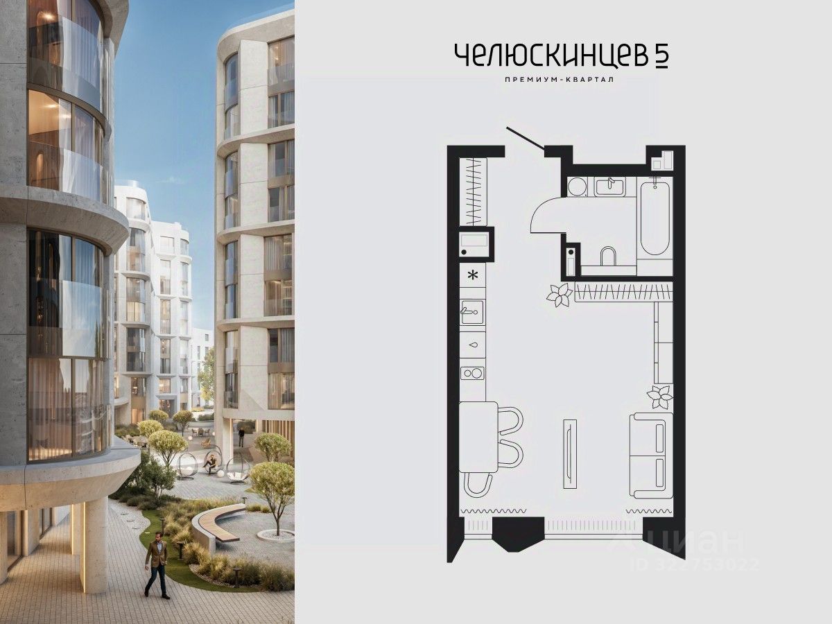 Квартира-студия в квартале премиум-класса. Проект расположен в самом центре города — между набережной и пешеходной улицей.
