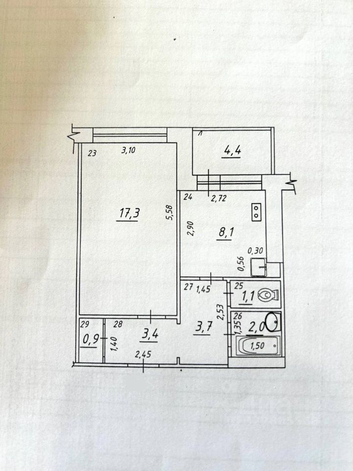 36,5 кв.м. без учета лоджии (17,3 просторная комната, большая квадратная кухня 8,1 кв.м., удобный раздельный санузел, лоджия 4,4 кв.м., большой коридор с возможностью установки встроенных шкафов)