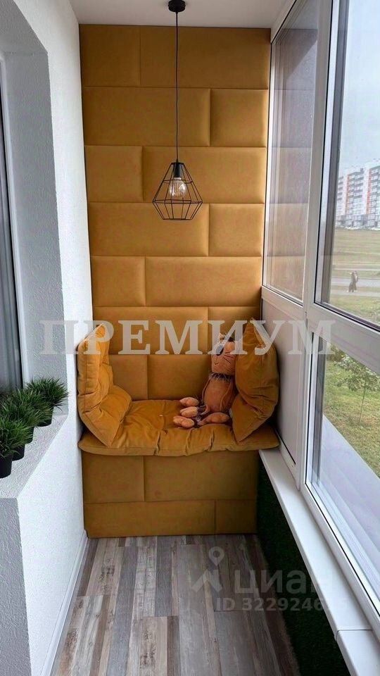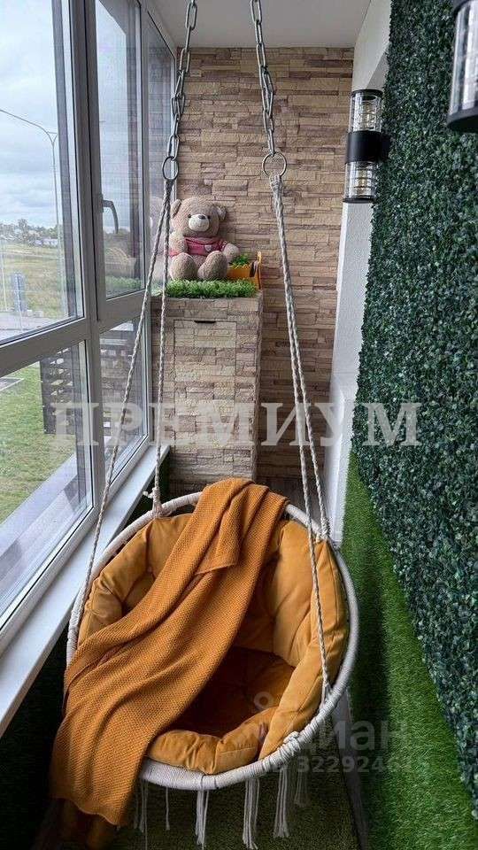 Панорамные окна на балконах с видом на парковку, больницу, шоссе и придомовое озеленение. Один балкон сделан как игровая зона для детей с подвесным креслом и искусственной зеленью. Этот балкон объединяет 2 детские комнаты. Второй балкон оформлен как lоungе zоnе для спокойного отдыха и наблюдением за великолепными закатами. На полу электрический подогрев.