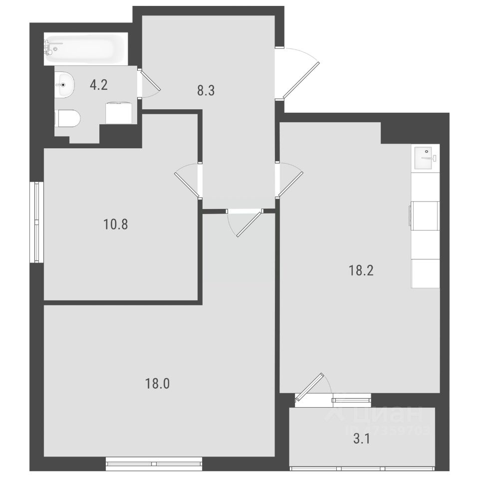 Просторная евро-двухкомнатная квартира, которая идеально подойдет для семей. Две спальни предоставляют возможность гибкой организации пространства: одна из них превосходно подойдет для полноценной спальни, в то время как меньшую по размеру можно адаптировать под детскую комнату или личный кабинет. Кухня-гостиная с выходом на лоджию — это дополнительное пространство для создания обеденной зоны и места для отдыха. Окна квартиры имеют выход на две стороны с прекрасными видами: как на город, так и на закрытый двор с игровой площадкой. Просторный совмещенный санузел позволяет установить полноценную ванну и стиральную машину, а в прихожей предусмотрено место для организации зоны хранения.
