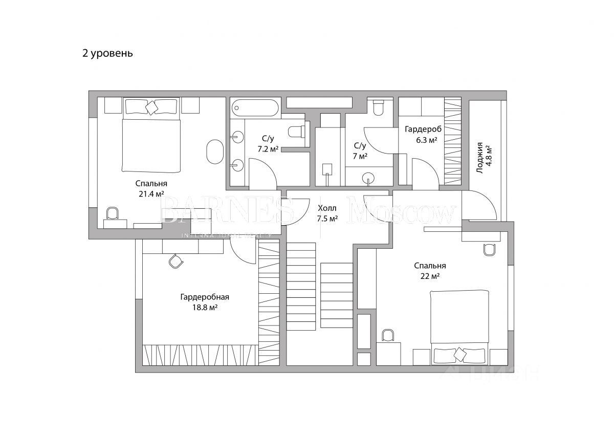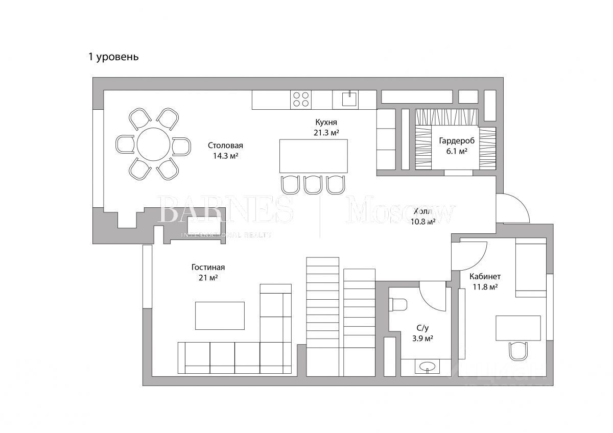 Таунхаус без отделки с возможностью разместить: 1 уровень - просторная гостиная с дровяным камином и зонами столовой и кухни, кабинет, гостевой санузел, холл с гардеробной, 2 уровень 2 мастер-спальни с гардеробными и санузлами, холл, 3 уровень - детская спальня с санузлом и гардеробной, вторая детская с гардеробной и выходом на балкон, санузел, игровая или комната няни, холл, цоколь - комната отдыха с тренажерным залом, техническая кухня, постирочная, санузел, кладовая, котельная.