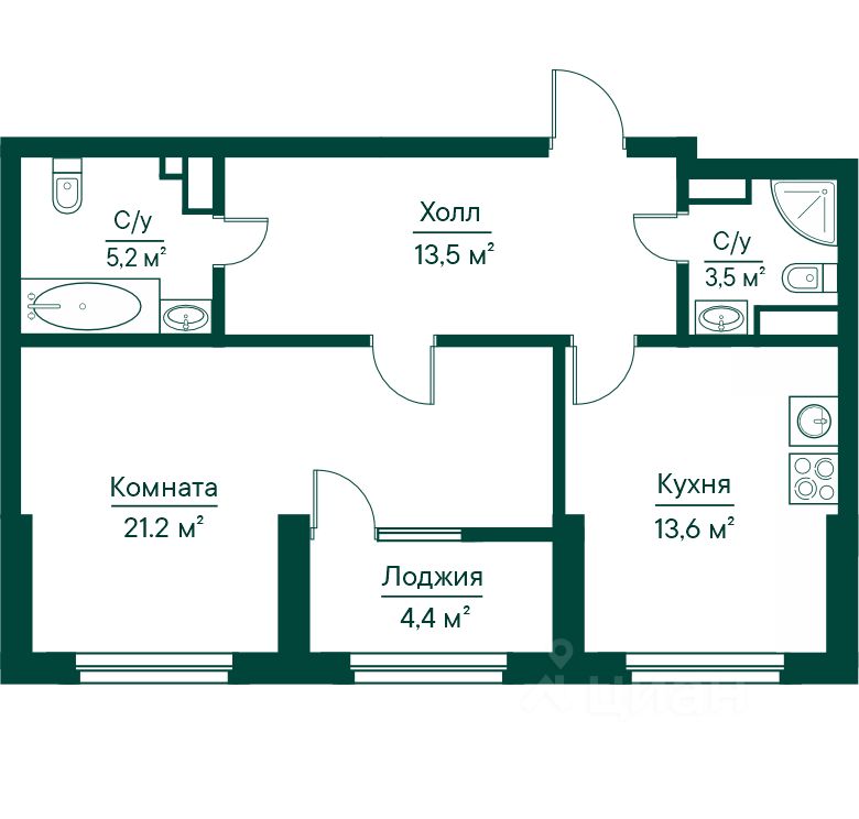 Общая площадь61,44 м2