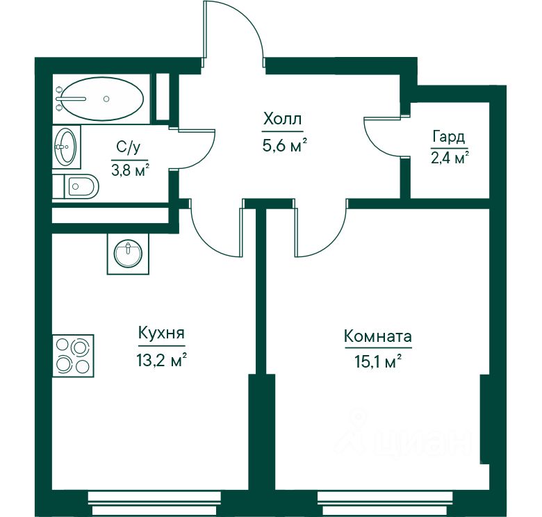 Общая площадь40,09 м2