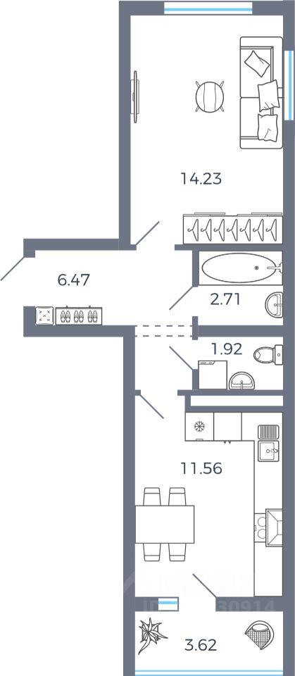 Жилая площадь14,2 м2