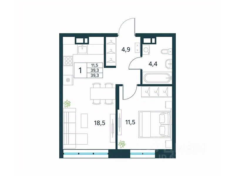 Продается 1-комн. квартира площадью 39,3 кв.м, без отделки. Квартира расположена на 4 этаже 10 этажного монолитно-кирпичного дома (Литер 3 (3 очередь), Секция 1) в ЖК ''Хороший'' от АТОЛЛ.