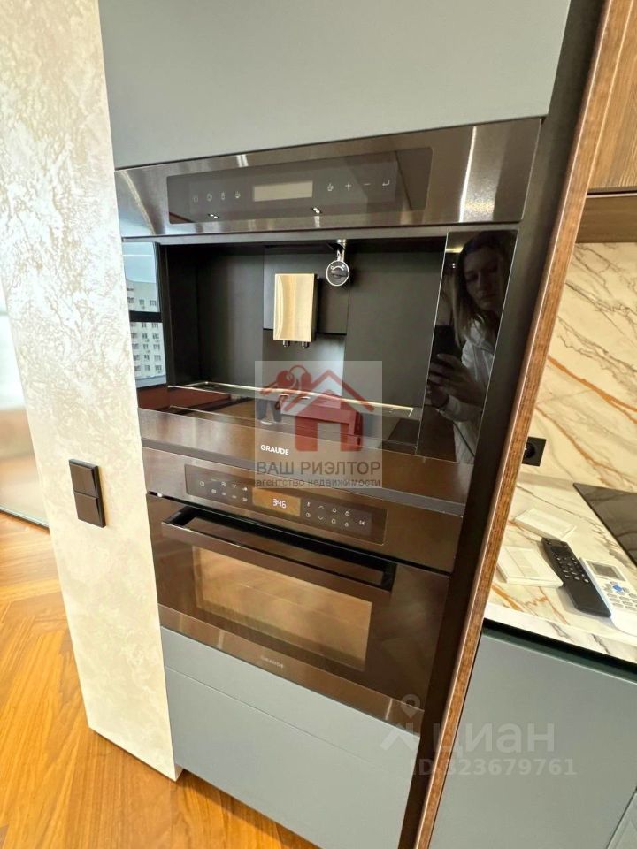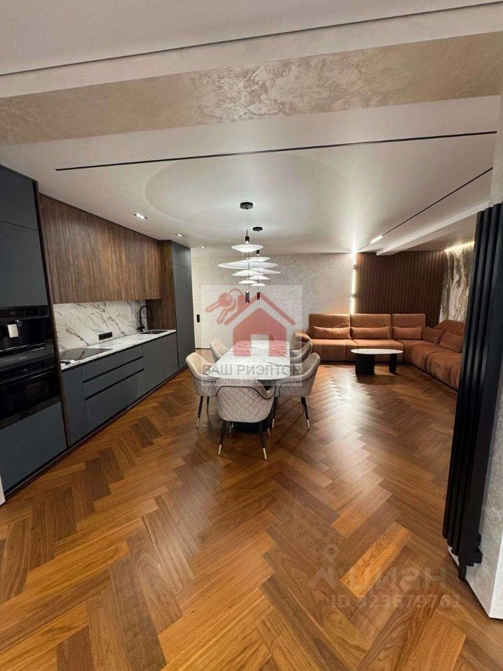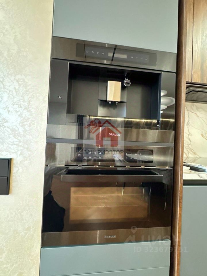 Кухню -гостиную с современным кухонным гарнитуром и фурнитурой итальянского производства, оснащенный немецкой варочной панелью KUPPERSBERG, кофемашиной и микроволновой печью GRAUDE, посудомоечной машиной ELECTROLUX, раковиной с измельчителем и фильтрацией OMOIKIRI, встроенным холодильником LIEBHERR, шикарный обеденный стол на 6 персон, удобные стулья. Обеденный и журнальный столы, а также столешница кухонного гарнитура сделаны на заказ из керамогранита CALACATTA производство Италия.