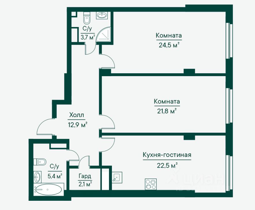 Дом 1. Сдача 1й квартал 2026г. Квартира с отличной эргономикой и планировкой! Метраж позволяет из квартиры сделать евро 3х. ком. кв. Удобная Кухня - гостинная 22.5 кв.м. может иметь две зоны: рабочую кухни, и отдельную место отдыха. Одна из с пален со своим! сан. узлом. Солнечная! сторона, вид на Софиевский собор, набережную р.Волга. Просторный холл - коридор. Есть отдельная гардеробная комната. Удобное расположение на этаже - в конце общего коридора.