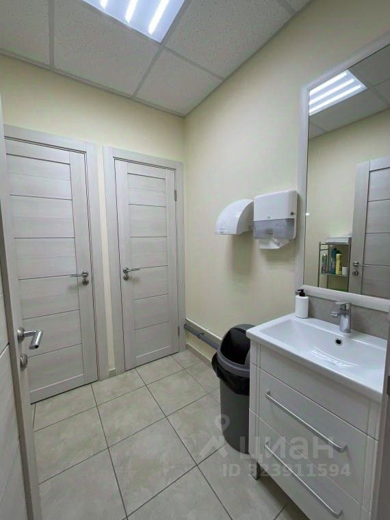 В помещении: - В настоящее время планировка кабинетного типа. При необходимости, можно планировать пространство по своему желанию, т.к. внутри нет несущих стен. - Новый современный, качественный, ремонт. - Видеонаблюдение, пожарная сигнализация. - Пропускная система ''скут''. - Продуманная инженерия: в каждой комнате кондиционеры, рецеркуляторы воздуха, вентиляция (бризеры). - Пол — керамогранит + ламинат. - Новые двери, новая проводка и лампы освещения. - Сан.узел на этаже