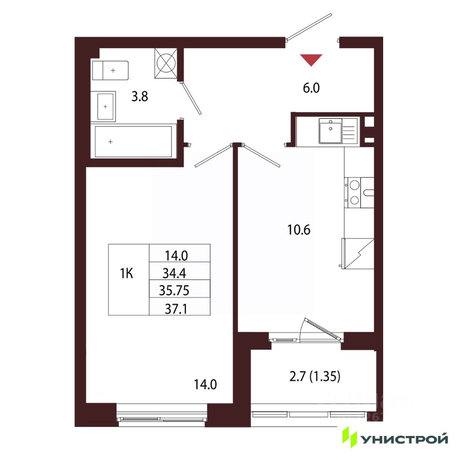 Общая площадь35,75 м2