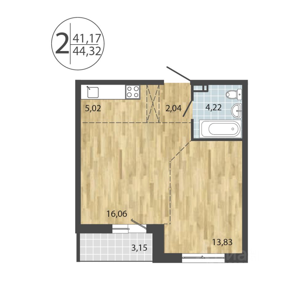 Общая площадь44,32 м2