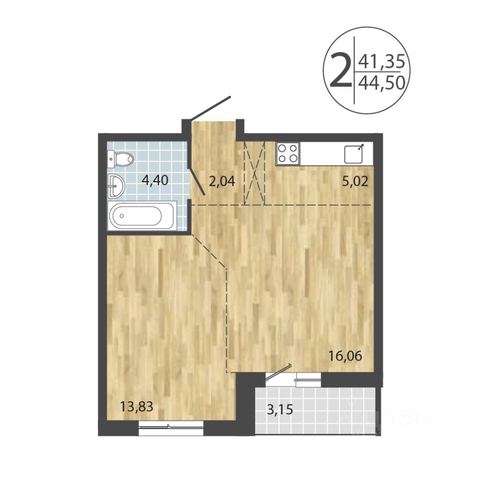 Общая площадь44,5 м2