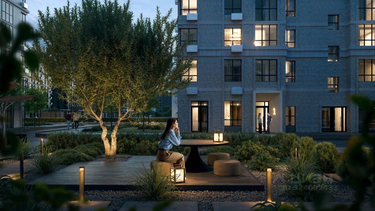 Архитектурные решения дополнены специальным освещением, которое подчеркивает фасады зданий и создает выразительный облик комплекса в вечернее время.