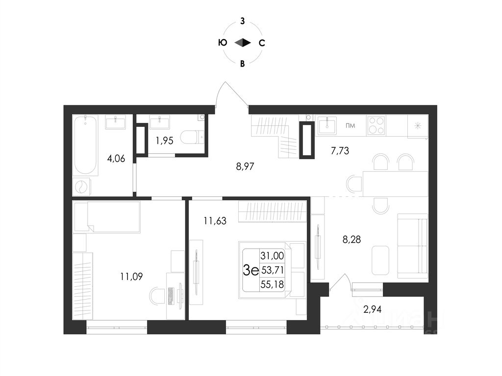 Общая площадь55,18 м2