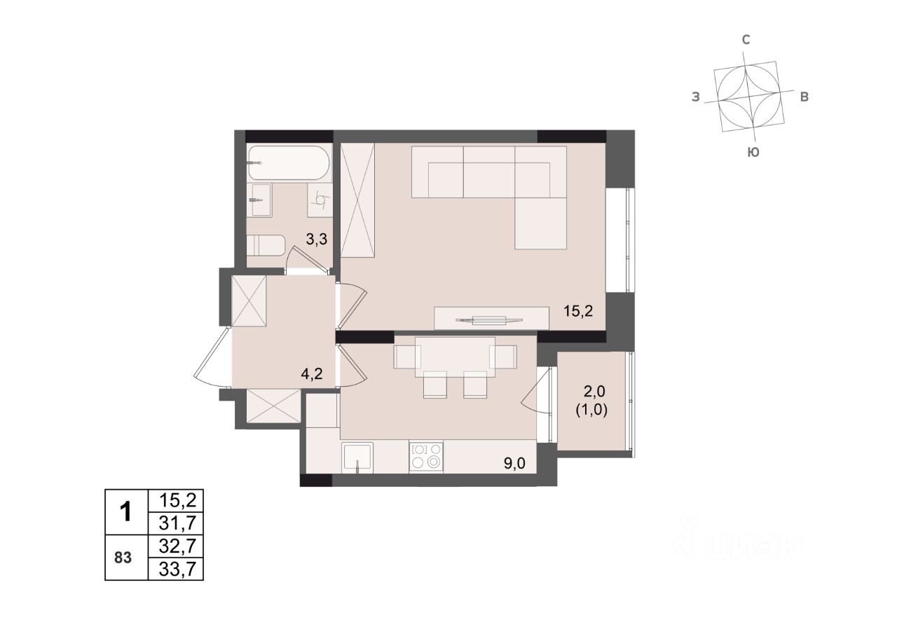 Общая площадь32,7 м2