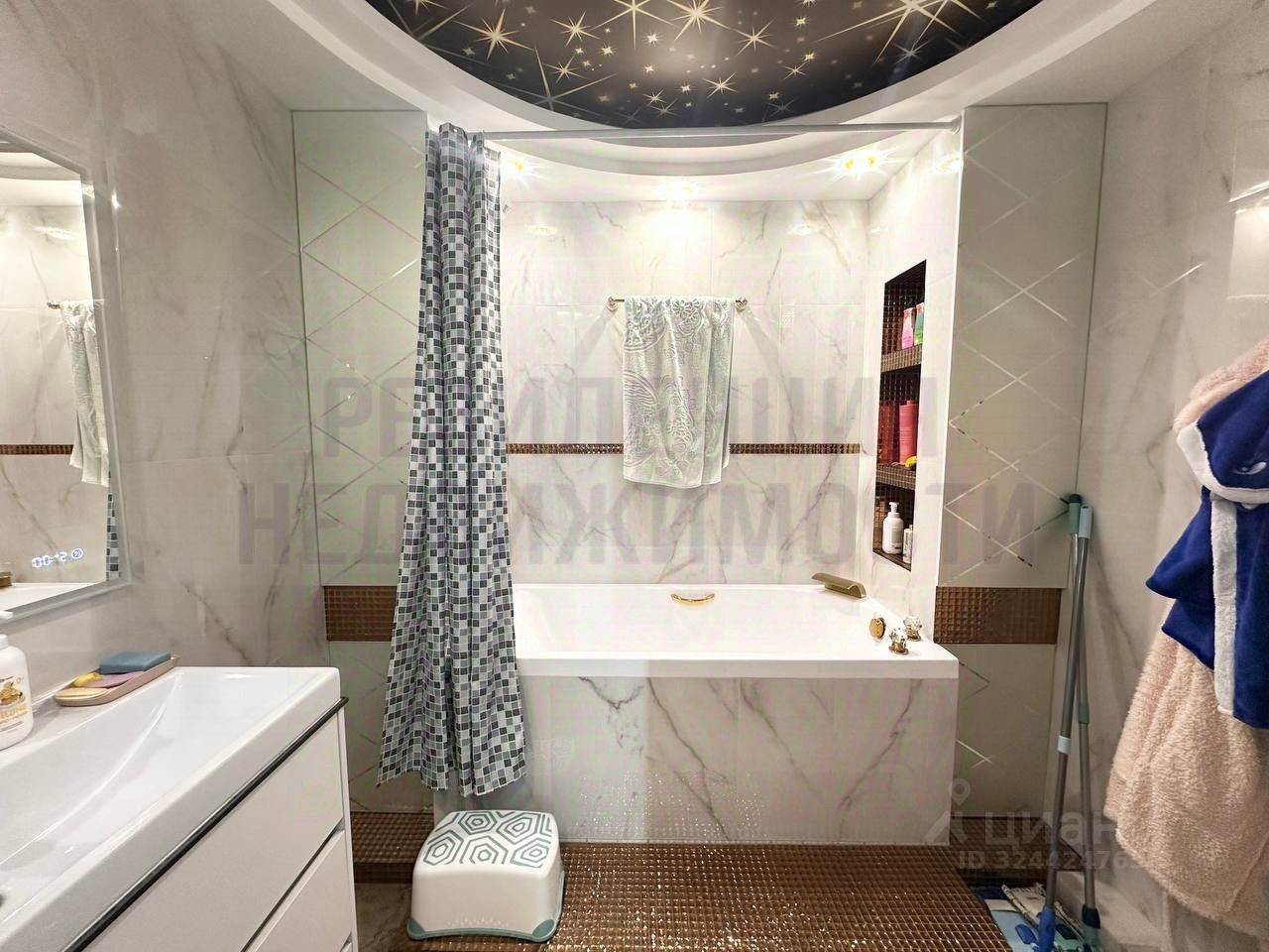 Выполнен очень дорогой дизайнерский ремонт с использованием премиальных отделочных материалов, качественной сантехники и продуманной системой освещения.