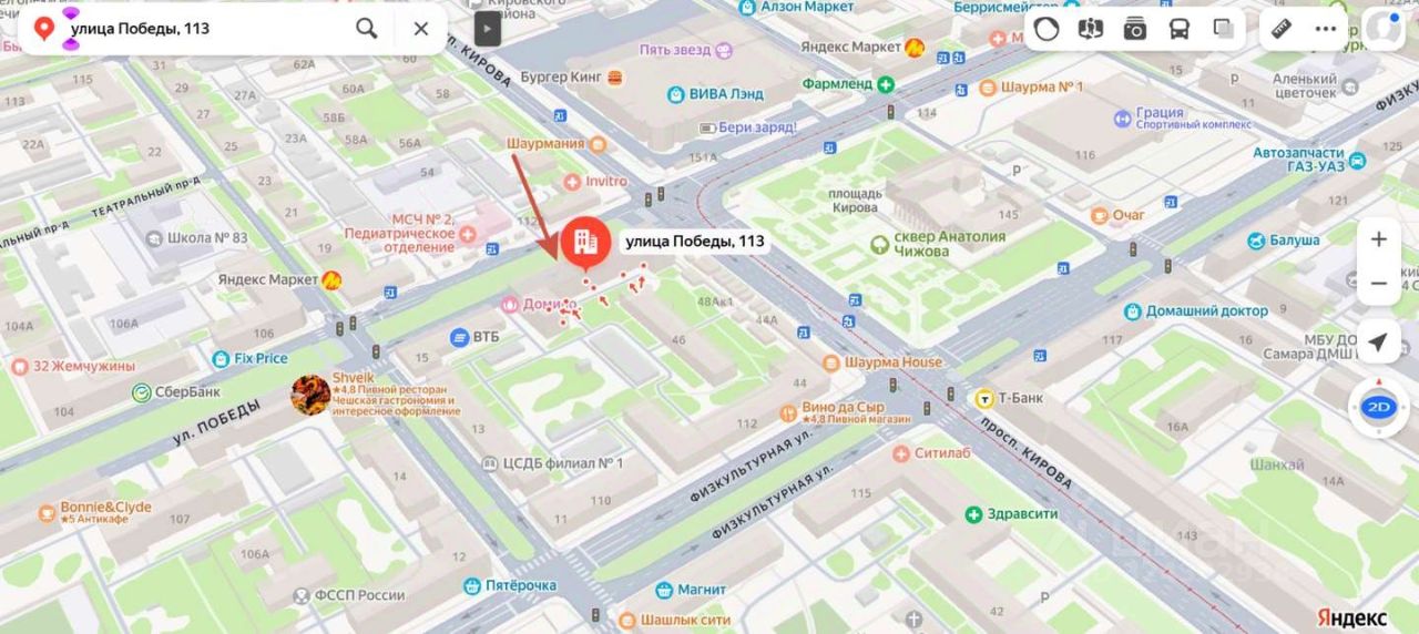 Сдам в аренду помещение в уникальной, всем жителям города известной локации. Интенсивный пешеходный и автомобильный трафик. В ближайшем окружении множество объектов коммерческой деятельности. В непосредственной близости располагается один из самых посещаемых торговых центров Самары ТЦ ВИВА Лэнд