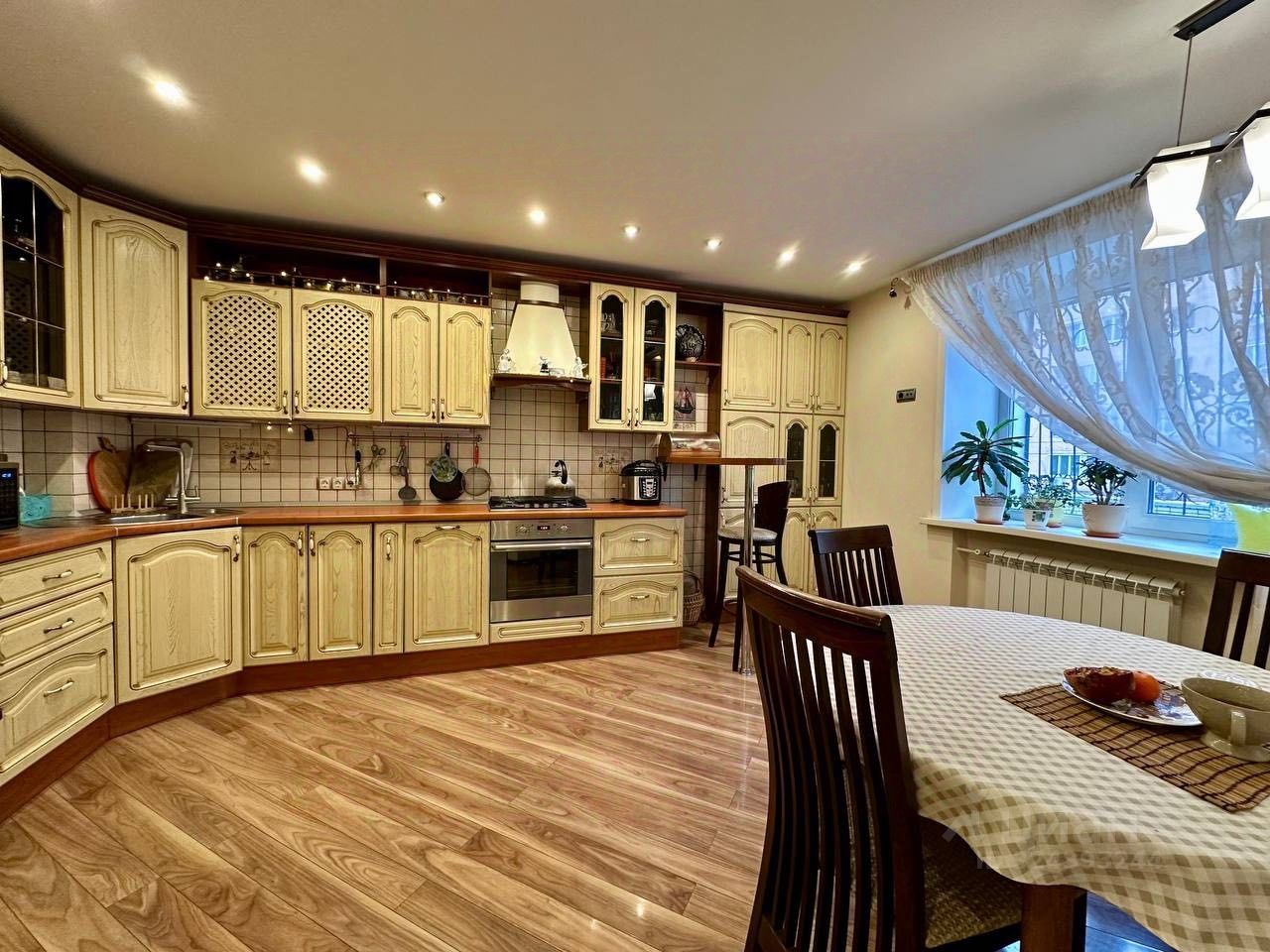 Квартира оснащена и оборудована всем необходимым для жизни: великолепный кухонный гарнитур с техникой, теплый пол, кондиционеры и системы хранения.